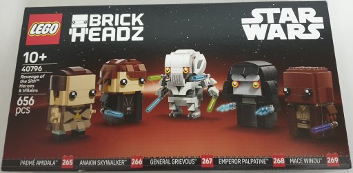 - Wat zit er in de doos: Onderdelen voor 5 LEGO BrickHeadz bouwfiguren: Anakin Skywalker, Padmé Amidala, General Grievous, Mace Windu en Emperor Palpatine; accessoires en instructies