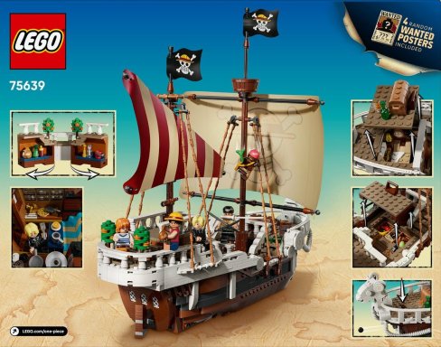 - Wat zit er in de doos: Onderdelen voor het piratenschip Going Merry met masten, zeilen, boegbeeld en roer; bemanningshut, keuken, opslagruimte, werkplaats; 5 minifiguren (Luffy, Zoro, Nami, Usopp, Sanji) en accessoires