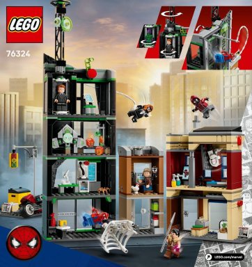- Minifiguren: Spider‑Man, Spider‑Woman, Miles Morales, Eddie Brock, Ghost‑Spider, Norman Osborn, Kraven the Hunter en Green Goblin