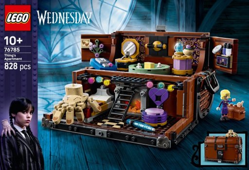 - Setnaam: Hutkoffer met Thing en Enid — LEGO® Wednesday