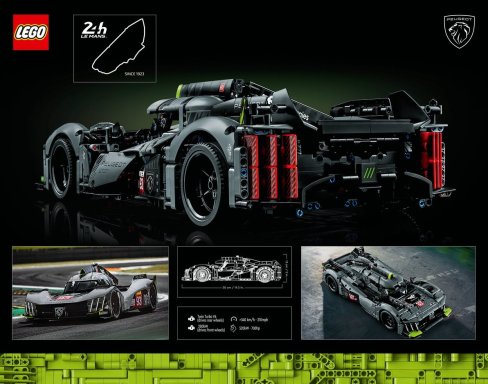 - Wat zit er in de doos: Bouwbare PEUGEOT 9X8 24H Le Mans Hybrid Hypercar; verlichte koplampelementen; grafische stickers en sponsorlogo's; displaystand; instructies