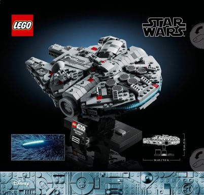- Hoofdfeatures: Iconische cockpit, satellietschotel, laserkanonnen en kenmerkende romp‑details in schaal‑getrouwe LEGO‑stijl