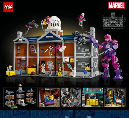 - Wat zit er in de doos: Alle onderdelen voor een gedetailleerde LEGO® X‑Mansion, 10 minifiguren (Wolverine, Professor X, Jean Grey, Cyclops, Storm, Gambit, Rogue, Iceman, Bishop, Magneto) en een bouwbare Sentinel