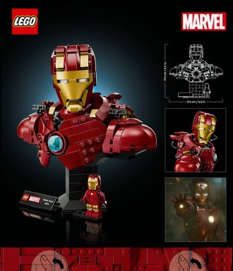 - Wat zit er in de doos: Alle onderdelen voor een gedetailleerde LEGO® ǀ Marvel Iron Man MK4 buste, stevige displaybasis met bedrukt naamplaatje en een afneembare Iron Man minifiguur