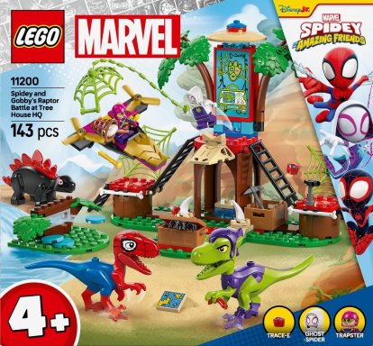 - Wat zit er in de doos: Onderdelen voor het boomhuis, minifiguren Trapster en Ghost‑Spider, figuren Gobby‑Raptor en Spidey‑Rex, plus Dino‑Spin en Trace‑E elementen en één grote startsteen