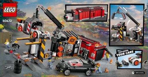 - Inhoud doos: grijpkraan, pletter, kantoorgebouw, 2 auto's en 4 medewerkersminifiguren