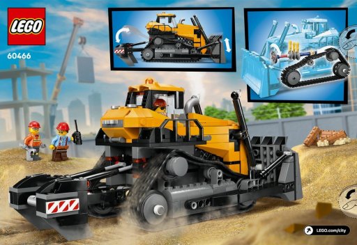 - Inhoud doos: een werkende speelgoedbulldozer, een chauffeur en twee bouwvakkers