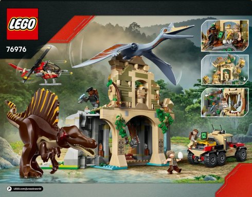 - Wat zit er in de doos: Voorgevormde Spinosaurus en Quetzalcoatlus, 4 minifiguren, oude tempel, speelgoedhelikopter, dinosaurustruck en accessoires
