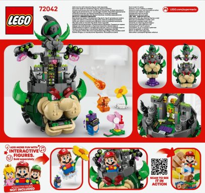 - Wat zit er in de doos: Bouwbare Kasteel‑Bowser figuur; roze Yoshi; Fiery Note Piranha; prins Florian; Wonder‑Bowser Jr.; standaard; accessoires; instructies