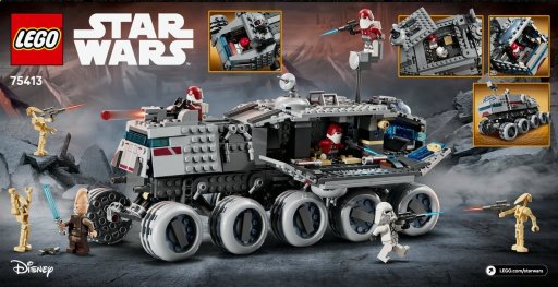 - Wat zit er in de doos: Onderdelen voor Republic Juggernaut; minifiguren Ki‑Adi‑Mundi, commandant Bacara, 3 Galactische mariniers; 3 Battle Droids; wapens, accessoires en instructies