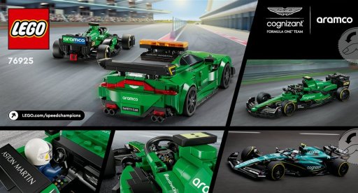 - Wat zit er in de doos: Onderdelen voor Aston Martin safety car en AMR23; 2 coureurminifiguren met helmen; stickers en bouwinstructies