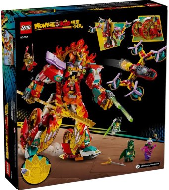 - Wat zit er in de doos: Onderdelen voor Nezha's vuurringmecha, speelgoeddrone met afneembare vleugels, minifiguren Mei, Monkie Kid, Nezha, Monkey King, demon met 9 koppen, demon met 100 ogen en een Kleursteen